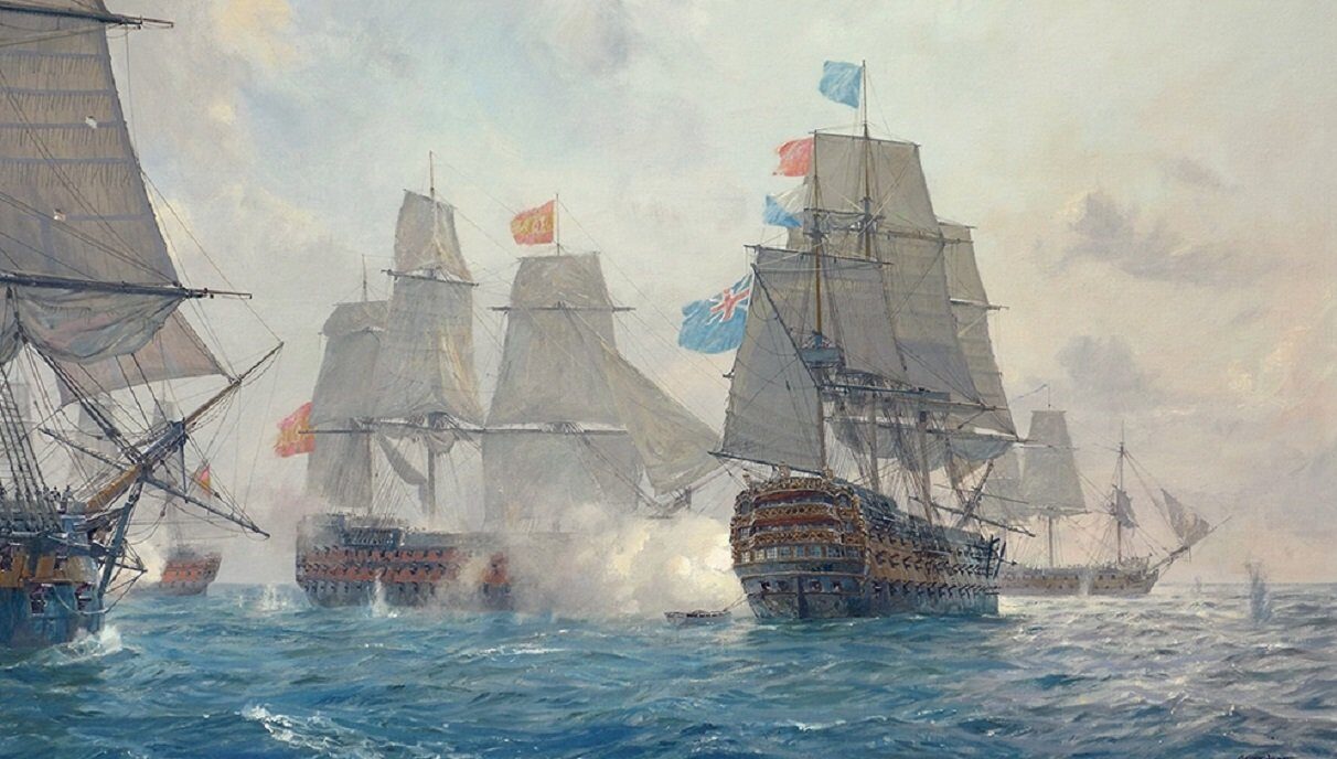 The Battle of the Levant Convoy was a naval engagement of the French Revolutionary Wars fought on 7 October 1795. During the battle, a powerful French squadron surprised a valuable British convoy from the Levant off Cape St Vincent on the coast of Portugal. The convoy was weakly defended, and although the small escort squadron tried to drive the French back, they were outmatched. In the ensuing action one of the British ships of the line and almost the entire convoy was overrun and captured. The French commander, Commodore Joseph de Richery, then retired to the neutral Spanish port of Cádiz, where he came under blockade.By August 1796, it was clear that Spain were about to enter the war on the side of revolutionary France. The fleets of the two countries combined would greatly outnumber the British, and so Admiral Jervis was ordered to retreat from the Mediterranean. He had sent his second in command, Rear-Admiral Man, with a squadron of seven ships, to get supplies from Gibraltar. After receiving the evacuation order, Jervis sent orders for Man to meet him back at Corsica as soon as possible.The Spanish declaration of war on Britain and Portugal in October 1796 made the British position in the Mediterranean untenable. The combined Franco-Spanish fleet of 38 ships of the line heavily outnumbered the British Mediterranean Fleet of fifteen ships of the line, forcing the British to evacuate their positions in first Corsica and then Elba.The Royal Navy, under the command of Admiral Sir John Jervis with 15 ships of the line defeated a Spanish fleet of 27 ships under the command of Vice-Admiral Don José de Córdoba Y Ramos.The Spanish fleet was formed in two loose columns, one of about 18 ships to windward and the other, of about 9 ships, somewhat closer to the British. The single British steered to pass between the two Spanish columns.The British line, led by Culloden, tacked in succession to reverse course and overhaul the larger Spanish column. The smaller Spanish division engaged the British line at the point they were tacking and some British ships were damaged and fell out of the line. As the last ship in the British line passed the end of the main Spanish line, the British line was in a U shape with Culloden in the lead and on the reverse course but chasing the rear of the Spanish. The Spanish lee division bore up in an effort to join their compatriots. Nelson, in Captain, towards the rear of the British line, disobeying previous ordered Captain Miller to take Captain out of line and engaged tthe smaller group. Other British ships from both ends of the line Culloden, Excellent, Blenheim and Prince George, supported this and prevented the two Spanish groups combining. The Captain was now under fire from up to as six Spanish ships, three of 112 guns and including Cordóba's flagship Santísima Trinidad .San Nicolás ran foul of San José, and they were boarded and taken by Captain, whilst 2 other Spanish ships struck to the supporting ships.The Spanish fleet was formed in two loose columns, one of about 18 ships to windward and the other, of about 9 ships, somewhat closer to the British. The single British steered to pass between the two Spanish columns.The British line, led by Culloden, tacked in succession to reverse course and overhaul the larger Spanish column. The smaller Spanish division engaged the British line at the point they were tacking and some British ships were damaged and fell out of the line. As the last ship in the British line passed the end of the main Spanish line, the British line was in a U shape with Culloden in the lead and on the reverse course but chasing the rear of the Spanish. The Spanish lee division bore up in an effort to join their compatriots. Nelson, in Captain, towards the rear of the British line, disobeying previous ordered Captain Miller to take Captain out of line and engaged tthe smaller group. Other British ships from both ends of the line Culloden, Excellent, Blenheim and Prince George, supported this and prevented the two Spanish groups combining. The Captain was now under fire from up to as six Spanish ships, three of 112 guns and including Cordóba's flagship Santísima Trinidad .Meanwhile, in October, he sent Commodore Horatio Nelson to evacuate the British garrison at Bastia and take them to Porto-Ferrajo at Elba. While there, Nelson learnt that Corsica were negotiating with France and planning to seize British property and imprison Gilbert Elliot, the viceroy. Nelson was having none of that, and threatened to bombard the town. Unsurprisingly, they backed down.On the 15th October, the Spanish fleet were seen off Cape Corse, and Jervis expected a major battle. But he was outnumbered, and had to wait for Man's squadron to return. But Man didn't show up, and on the 26th October the Spanish went into Toulon and joined the French fleet there, making a combined fleet of 34 ships of the line. Jervis had just 15. Jervis was left with no choice but to leave the Mediterranean, so on the 2nd November he and his fleet sailed for Gibraltar. He still held out hope of seeing Man on the way, but rumours were begin to spread through the fleet that he had deserted.In fact, Admiral Man had seen the Spanish fleet while at Gibraltar, and watched them sail eastwards into the Mediterranean. Knowing that the enemy were now between his small squadron and the main fleet, he turned tail and ran back to England. Having deprived the British fleet of seven valuable ships, Man was ordered by the Admiralty to strike his flag, and he never served again.Jervis' fleet reached Gibraltar on the 1st December, and there he found orders to move his base to Lisbon. He sent Nelson, in a frigate called La Minerve and accompanied by another frigate, the Blanche, back to Elba, this time to rescue the garrison now stationed in Porto-Ferrajo, as the British fleet's evacuation of the Mediterranean would leave them stranded and at the mercy of the French. Jervis trusted Nelson enough to